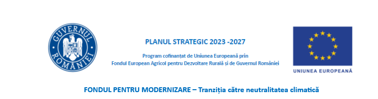 Acest proiect a obținut finanțare în cadrul Planului Strategic 2023 – 2027 (PS 2023 - 2027), FONDUL PENTRU MODERNIZARE – Tranzitia catre neutralitate climatica, Schema de ajutor privind sprijinirea investițiilor în noi capacități de producere a energiei electrice produsă din surse regenerabile pentru autoconsumul întreprinderilor din cadrul sectorului agricol și industriei alimentare.