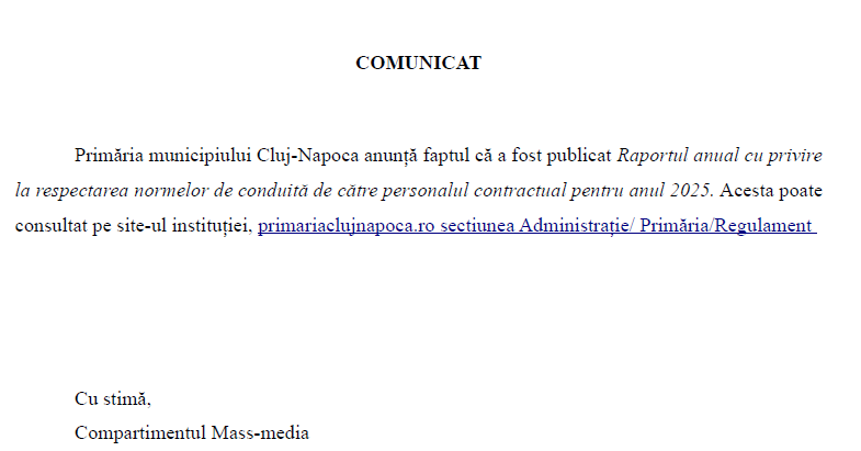 AGERPRES nu îşi asumă responsabilitatea pentru informaţiile conţinute de comunicatele primite şi publicate în fluxul de ştiri sau pe site-ul public. Responsabilitatea conţinutului aparţine exclusiv emitentului comunicatului de presă.