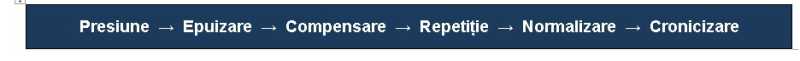 Presiune → Epuizare → Compensare → Repetiție → Normalizare → Cronicizare.