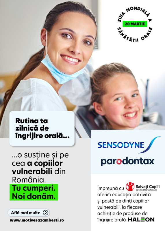Cu ocazia Zilei Mondiale a Sănătății Orale, celebrată în fiecare an în data de 20 Martie, Haleon România, lider global în sănătatea consumatorului, și Salvați Copiii România lansează o inițiativă națională menită să susțină sănătatea orală a copiilor din comunități vulnerabile, prin acces la produse esențiale și educație pentru prevenție