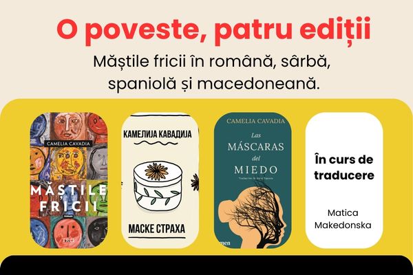 După zeci de mii de exemplare vândute în România, bestsellerul Măștile fricii semnat de Camelia Cavadia și publicat de Editura Trei va fi tradus și în macedoneană, la prestigioasa Matica Makedonska, prima editură independentă lansată în Macedonia liberă, în urmă cu 35 de ani. Este a treia traducere a acestui roman intens și emoționant, după apariția sa în limba spaniolă (Las máscaras del miedo), la Editura Omen, și în limba sârbă (Маске страха), la editura Prometej. Evenimentul marchează un nou pas important în parcursul internațional al cărții și al autoarei.