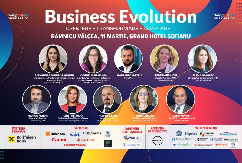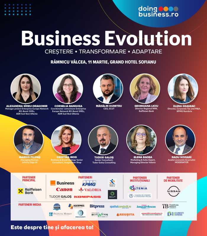 Pentru a ajuta antreprenorii și managerii din companiile locale să se adapteze schimbărilor și provocărilor constante, aducând și prezentând informații noi, concrete și practice, tendinte și soluții de dezvoltare, Doingbusiness.ro a demarat seria de evenimente “Business Evolution. Creștere. Transformare. Adaptare” din 2026, iar cea de-a doua are loc pe 11 martie la Grand Hotel Sofianu Râmnicu Vâlcea.