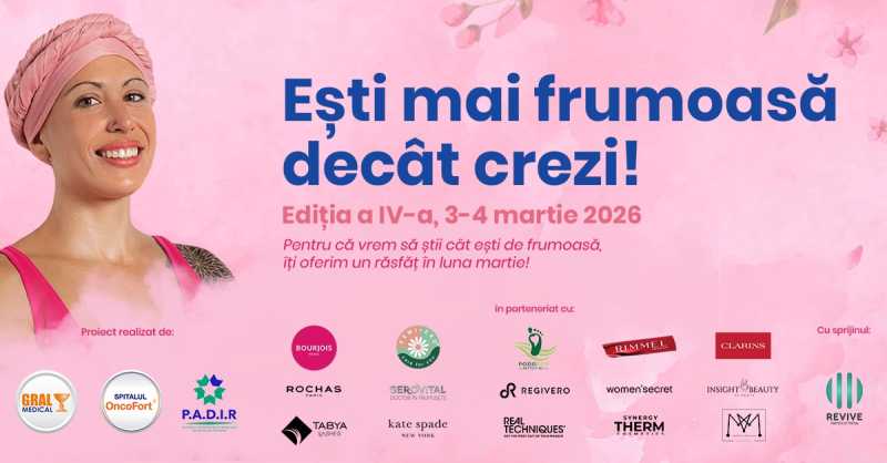 Astazi, GRAL Medical, Spitalul OncoFort si PADIR (Patronatul Antreprenorilor din Industria Infrumusetarii din Romania) anunta cu emotie inceperea celei de-a IV-a editii a campaniei de suflet „Esti mai frumoasa decat crezi!”. Proiectul este dedicat exclusiv pacientelor oncologice si se desfasoara in perioada 3-4 martie in cadrul Spitalului OncoFort din Bucuresti si Ploiesti. Campania &bd