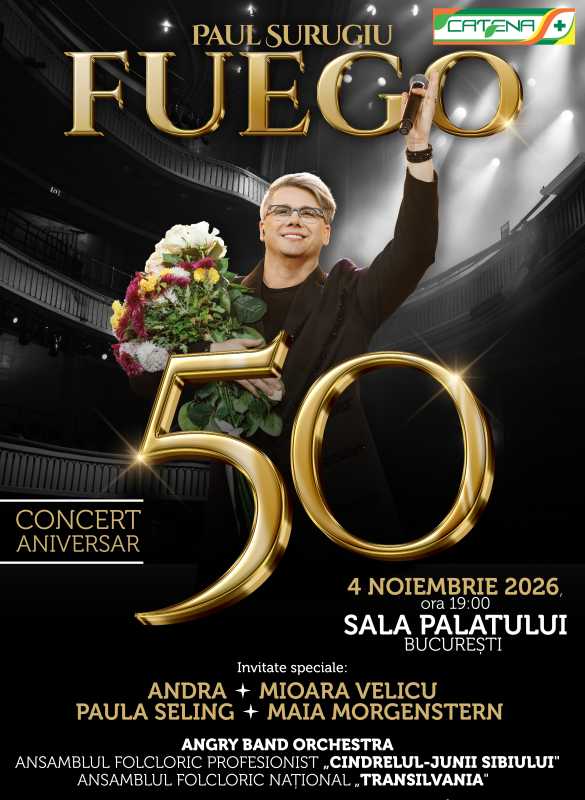 Andra, Paula Seling, Mioara Velicu și Maia Morgenstern, printre numele ce vor urca pe scenă Pe 4 noiembrie 2026, de la ora 19:00, pe scena Sălii Palatului din București, va avea loc concertul aniversar „FUEGO – 50”, un eveniment care marchează împlinirea a 50 de ani de viață și 35 de ani de carieră ai artistului Paul Surugiu-Fuego. Deși aniversarea sa are loc în luna august, artistul a ales să sărbătorească acest moment alături de public în cadrul unui spectacol amplu, conceput special pentru această etapă importantă din parcursul său profesional. Concertul va pro