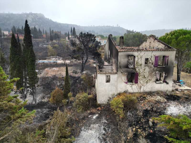 Treizeci și șase de case au fost distruse, iar altele au fost avariate, în timp ce peste douăzeci de depozite agricole au ars, din cele 3.000 de clădiri apărate de pompieri, potrivit prefecturii Aude.