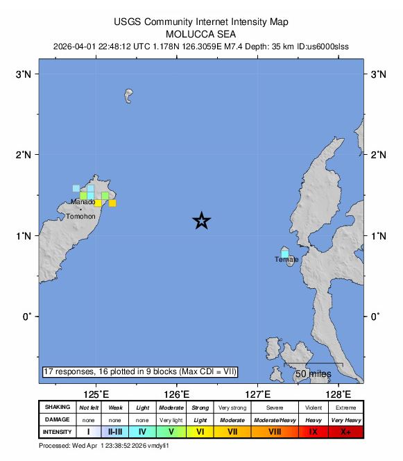 Un corespondent al AFP care locuiește la Manado a declarat că mișcările seismice l-au trezit pe el, precum și pe alte persoane din oraș care au fugit afară.