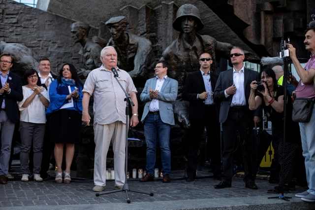 Fostul lider al Solidarităţii, Lech Walesa, se alătură manifestanţilor în faţa Curţii Supreme
