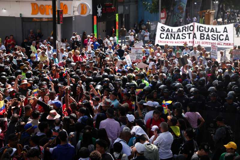 Poliția venezueleană a recurs la tiruri cu gaze lacrimogene împotriva celor circa 2.000 de manifestanți reuniți joi la Caracas pentru a cere creșteri salariale în fața palatului prezidențial Miraflores, potrivit AFP. 'Să mergem la Miraflores!'. 'Se tem că poporul va ajunge la Miraflores!', strigau manifestanții forțelor de securitat