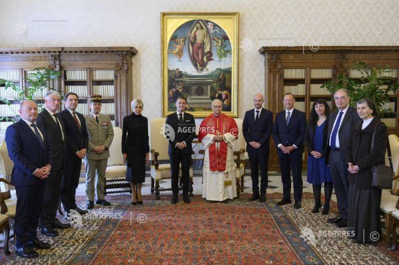 Însoțit de soția sa, Brigitte Macron, președintele francez a fost primit la palatul apostolic, unde a discutat în privat cu Papa timp de o oră, o durată semnificativ mai lungă decât cea obișnuită pentru o audiență papală.