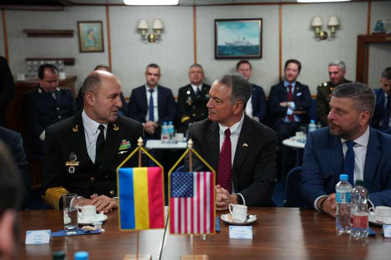 Ambasadorul SUA - la bordul fregatei 'Regina Maria'; a asistat la o demonstrație a sistemului de aeronave fără pilot V-BAT