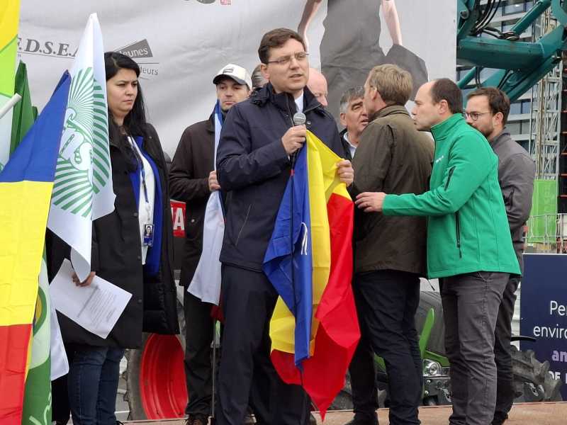 Președintele asociației de fermieri spune că 52 de fermieri români au venit la protestul organizat de COPA-COGECA, mare uniune din domeniul agricol care reunește două asociații umbrelă are fermierilor, și că 'am fi venit mult mai mulți, însă biletele de transport au fost epuizate foarte repede'.