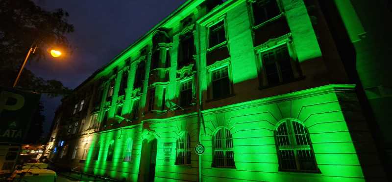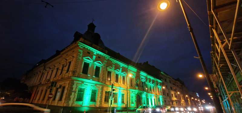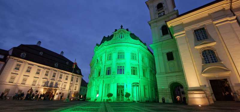 Pentru prima dată în municipiul Sibiu, 13 clădiri reprezentative, aparținând administrației publice locale, instituțiilor de cultură și de învățământ, au fost iluminate în verde, vineri seara, pentru a marca Ziua sănătății mintale.