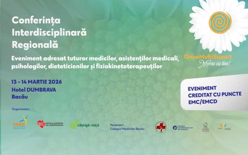 Spitalul Județean de Urgență (SJU) Bacău va organiza prima Conferință Regională Interdisciplinară Onco Multi Suport 'Pacientul oncologic nu este doar al oncologului', a anunțat, joi, conducerea unității sanitare. Managerul SJU Bacău a subliniat că acest eveniment este unic și inedit în România, și aduce împreună speci