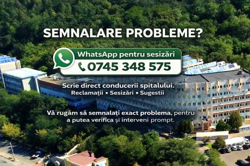 Conducerea Spitalului Județean de Urgență (SJU) Piatra-Neamț a anunțat, joi, că pune la dispoziția pacienților, aparținătorilor și angajaților un număr de WhatsApp pentru sesizări și reclamații. Managerul unității sanitare, conf. dr. Alexandru Pătrașcu, a precizat că la numărul 0745.348.575 pot fi transmise direct conducerii SJU sesizări privind actul medical,