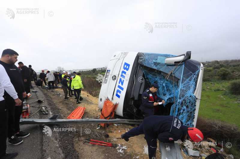 Șaisprezece persoane și-au pierdut viața și 30 au fost rănite în două accidente rutiere produse duminică în Turcia, transmit AFP, dpa și Xinhua, citând autoritățile și media locale. Un autocar cu 34 de persoane la bord a derapat pe o șosea din provincia sudică Antalya, răsturnându-se apoi pe marginea drumului. Nouă pers