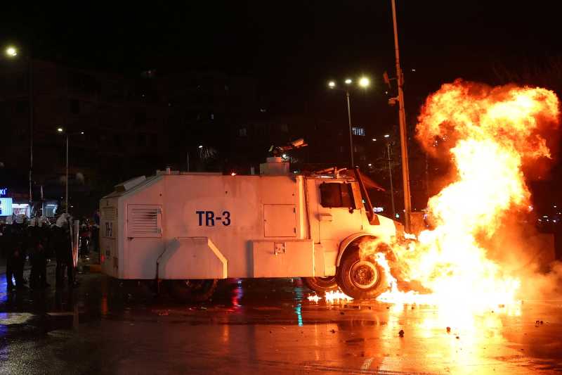 Incidentele au avut loc mai întâi în fața biroului prim-ministrului și, mai târziu, în apropierea clădirii Parlamentului, unde poliția a instituit un cordon de securitate și a răspuns cu gaze lacrimogene și tunuri cu apă.