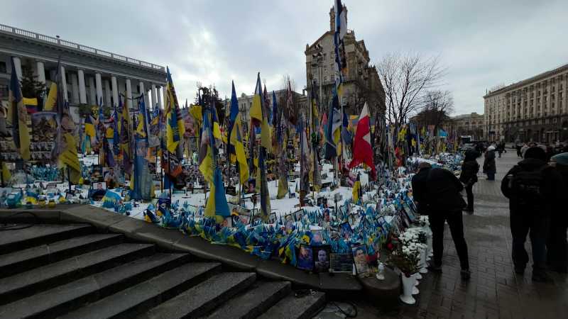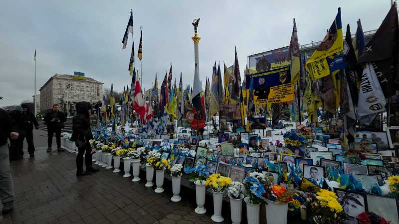 Kiev - Trimisul special al AGERPRES, Cristian Lupașcu, transmite: Sute de persoane s-au recules, marți dimineață, la memorialul din Piața Independenței din centrul Kievului dedicat eroilor căzuți în războiul declanșat de Federația Rusă pe 24 februarie 2022.