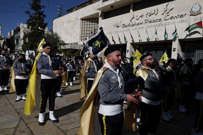În sunet de cimpoaie și tobe, cercetașii palestinieni au defilat miercuri pe străzile din Betleem, dând startul primei sărbători festive de Crăciun, organizată de la începutul războiului din Gaza în orașul din Cisiordania, leagănul creștinismului, relatează AFP. La mii de kilometri distanță, papa Leon al XIV-lea va ofic