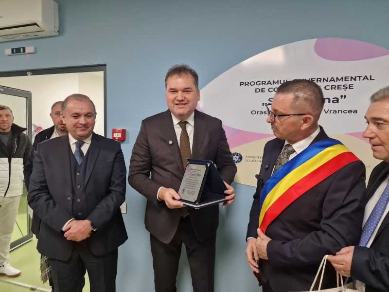 Ministrul Dezvoltării, Lucrărilor Publice și Administrației, Cseke Attila, a inaugurat miercuri, la Odobești, prima creșă din județul Vrancea realizată prin programul guvernamental de construire de creșe 'Sfânta Ana', obiectiv finanțat prin Planul Național de Redresare și Reziliență (PNRR). Creșa cu numărul 50 finalizată la nivel