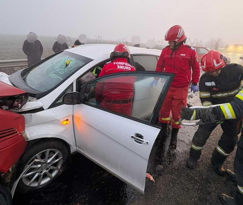 Neamț: Cinci persoane implicate într-un carambol cu patru autovehicule; în zonă este ceață și polei