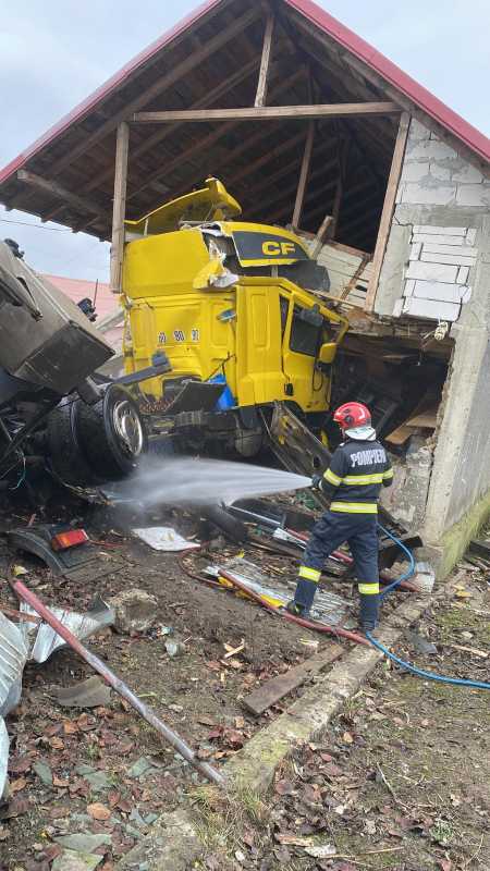 Pompierii militari din cadrul Inspectoratului pentru Situații de Urgență (ISU) Bacău au intervenit de urgență, duminică, la un accident rutier produs în comuna Filipești, satul Onișcani, unde un autotren a intrat într-o casă de locuit. 'În aceste momente, pompierii militari din cadrul ISU Bacău intervin la un accident rut