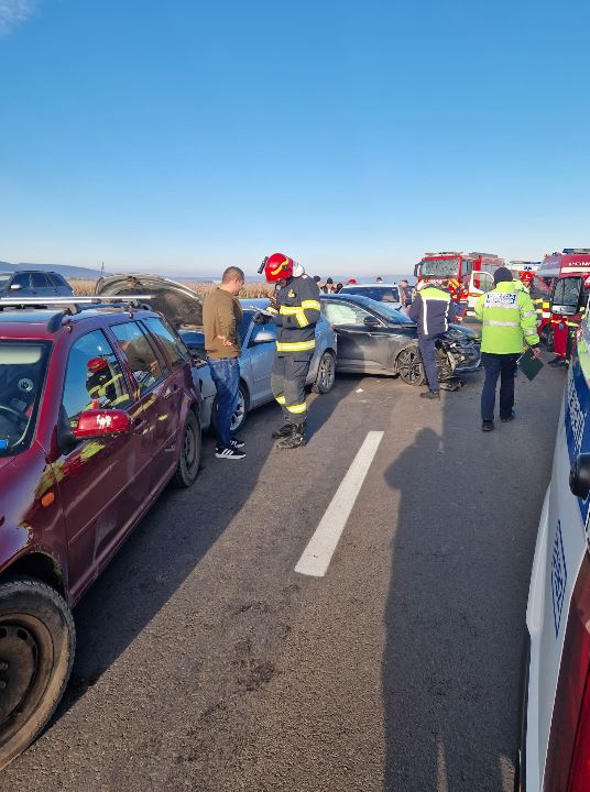 Covasna: Șapte autoturisme, implicate într-un accident pe DN11; patru adulți și un minor - transportați la spital