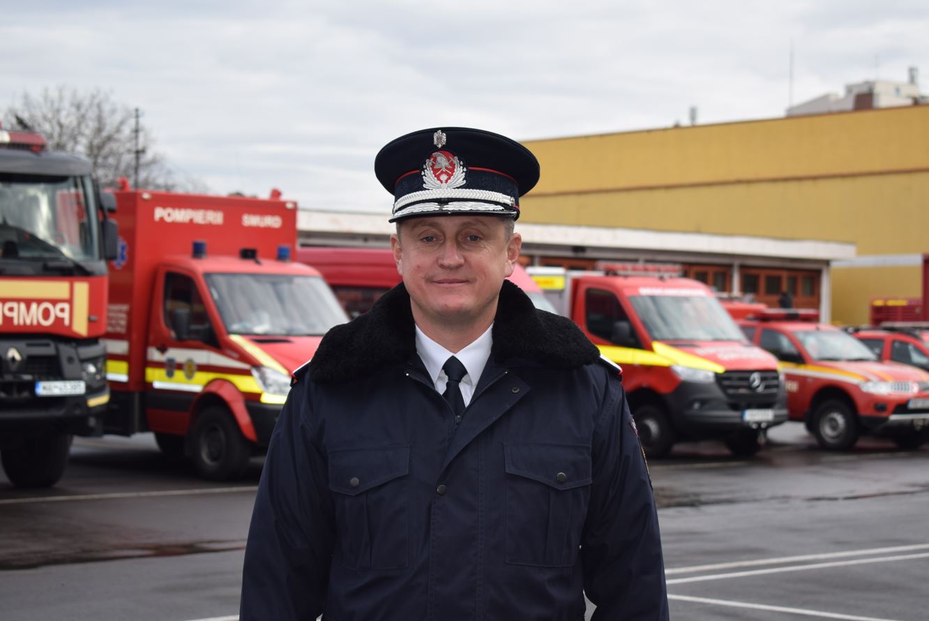 Plutonierul adjutant şef Ioan Dorin Florea este şef gardă intervenţie stingere la Detaşamentul de Pompieri din Târgu Mureş activează în cadrul ISU Mureş de aproape 27 de ani şi a primit cu satisfacţie şi emoţie momentul avansării înainte de termen.