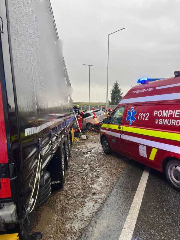 Suceava: Un autoturism și un ansamblu rutier, implicate într-o coliziune pe DN 2, la Pătrăuți; patru persoane rănite