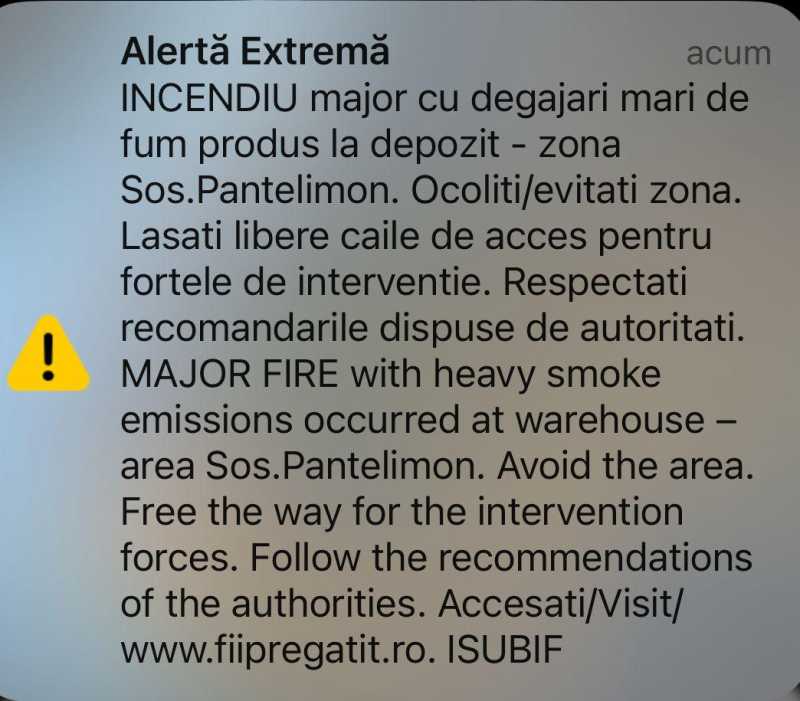 Potrivit sursei citate, mesajul a fost transmis pe o rază de doi kilometri de la locul incendiului.