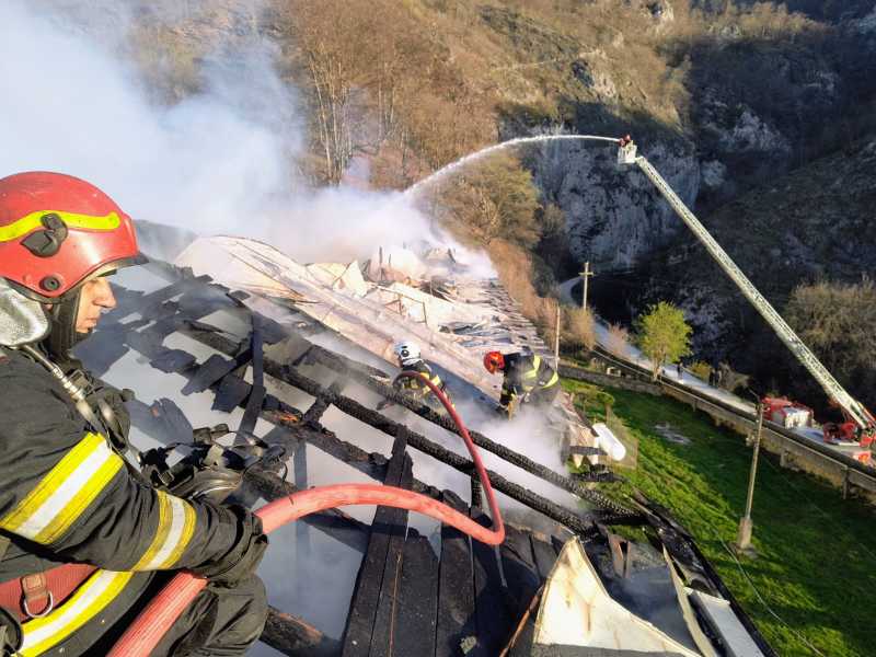 Un incendiu de proporții a izbucnit duminică dimineața la Mănăstirea Bistrița, echipaje de pompieri din trei județe intervenind pentru stingerea focului ce se manifestă pe o suprafață de circa 800 de metri pătrați.