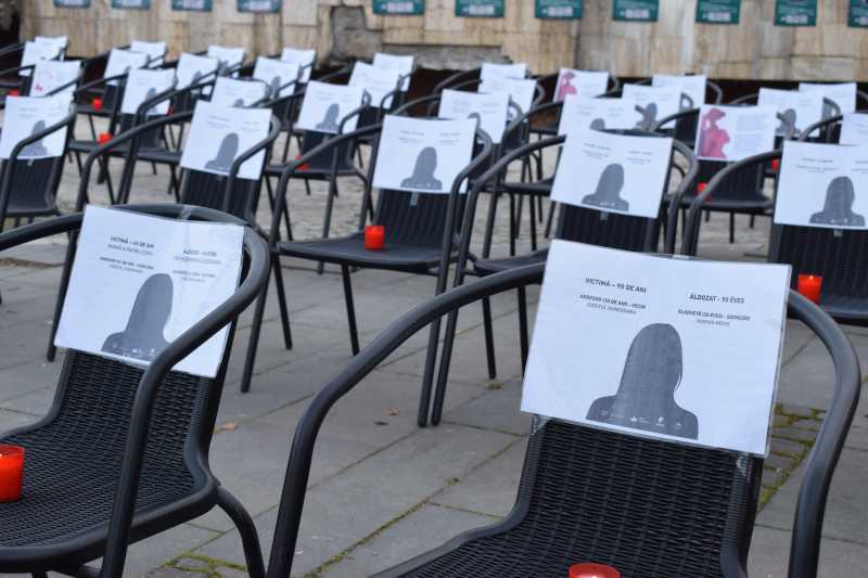 Pe cele 52 de scaune aduse în fața Casei de Cultură a Sindicatelor din Miercurea-Ciuc, în memoria femeilor care au murit, a fost așezată câte o lumânare, iar pe fiecare scaun au fost prezentate informații despre vârsta victimei, numărul copiilor rămași în urmă și circumstanțele în care viața i-a fost curmată.