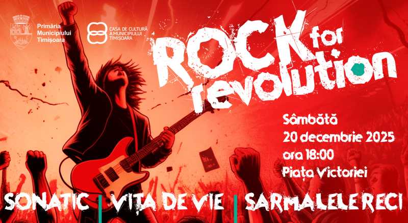 De la ora 18:00, în Piața Operei/Victoriei va avea loc concertul Rock for Revolution, eveniment care este pe agenda Primăriei începând cu anul 2010 și care găzduiește trupe rock locale și din țară sau de peste hotare.