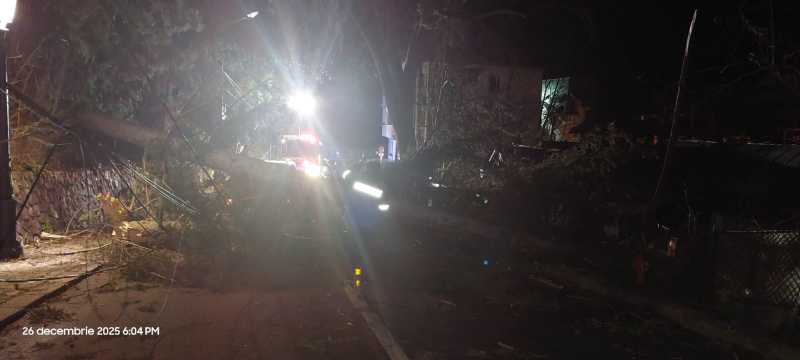 'Vorbim despre mai mulți copaci căzuți pe strada Zamora, pe garduri și fire de curent electric, dar și despre cinci copaci căzuți pe strada Mănăstirii. Unul dintre aceștia a căzut peste un autoturism la bordul căruia se aflau trei ocupanți care, din fericire, nu au fost răniți. Pompierii Detașamentului Sinaia vin in sprijinul comunităților afectate, misiunile fiind în dinamică', se arată în informarea ISU Prahova.