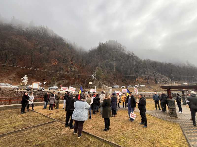 Vâlcea: Câteva zeci de localnici din Perișani au protestat împotriva traficului greu al constructorului autostrăzii Sibiu-Pitești (GALERIE FOTO)