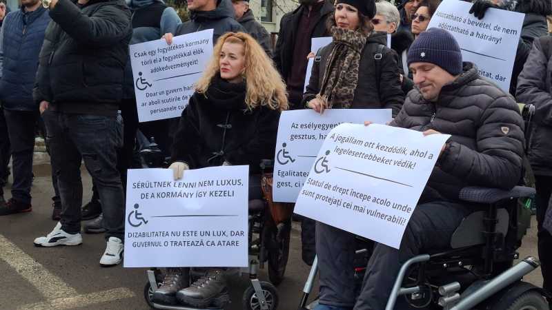 De asemenea, printre protestatari s-au numărat și persoane cu dizabilități sau reprezentanți ai acestora, care și-au exprimat nemulțumirea față de eliminarea facilităților fiscale pentru această categorie. Pancartele afișate de aceste persoane purtau mesaje precum: 'Facilități fiscale: eliminate. Pensii speciale: ireductibile?!', 'Statul de drept începe acolo unde sunt protejați cei mai vulnerabili!' sau 'Dizabilitatea nu este un lux, dar Guvernul o tratează ca atare'.