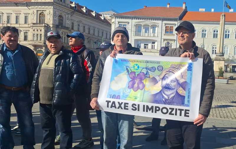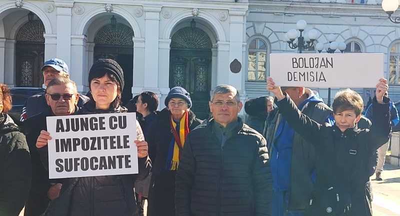 Aproximativ 150 de oameni au ieșit în stradă, joi, în fața Palatului Administrativ din Arad, pentru a protesta față de majorările de taxe și impozite aplicate din acest an.