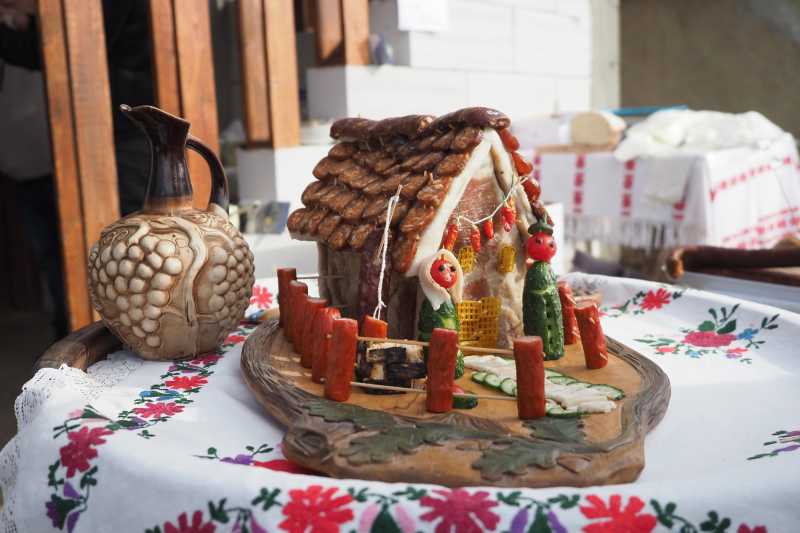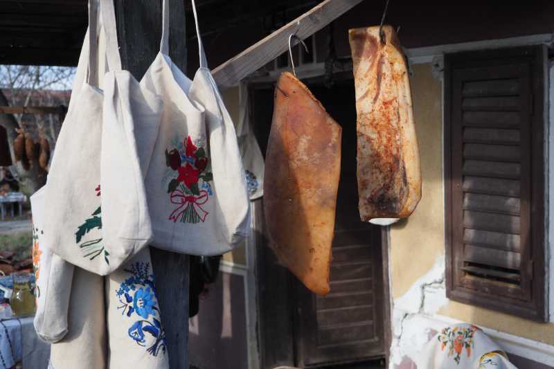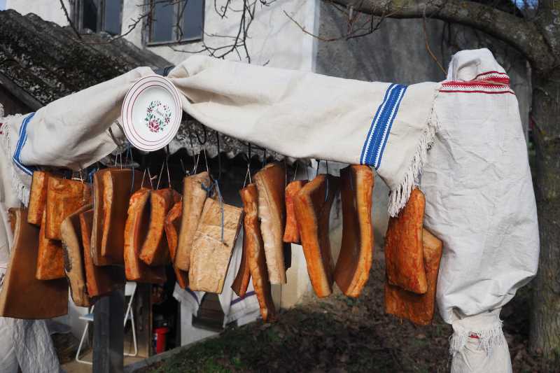 'Dacă cineva a venit în Șamșud, pe Aleea Beciurilor, vrem să se simtă ca la un adevărat festival, să nu plece nimeni flămând acasă', promite primarul comunei, în timp ce un nou val de vizitatori se oprește să admire ''sculpturile'' în slănină expuse la standuri.