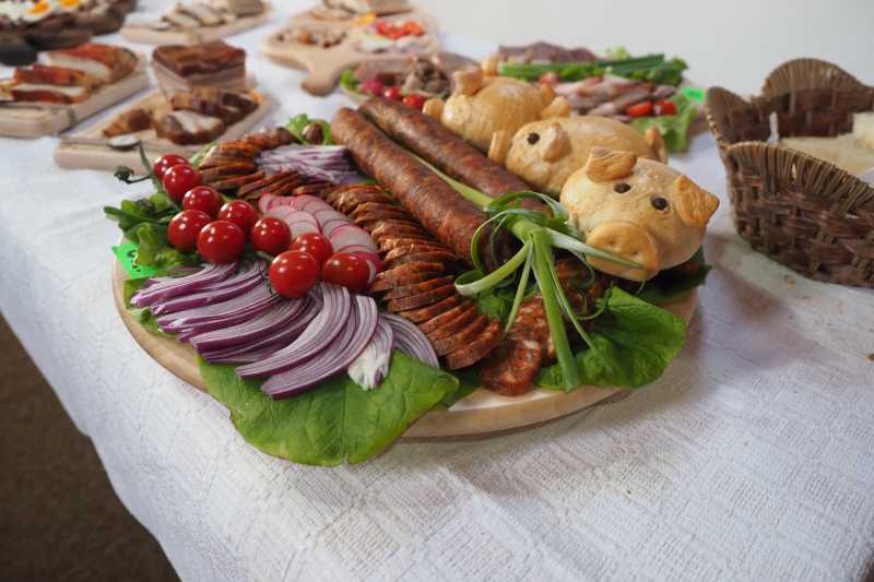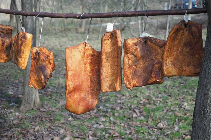 Miza principală a zilei rămâne însă concursul de slănină, jurizat de șapte 'specialiști' cu experiență în arta preparatelor din porc.