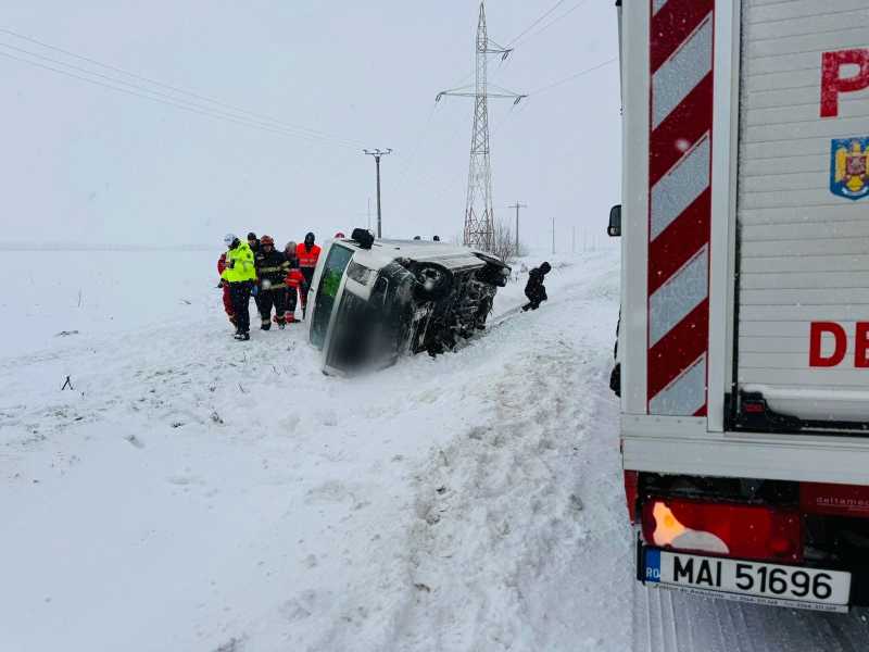 'În jurul orei 9:35, în afara localității Plopșoru, județul Giurgiu, a avut loc un eveniment rutier, soldat cu rănirea unei persoane. Din primele cercetări a reieșit faptul că un bărbat de 55 de ani, din județul Ilfov, în timp ce conducea un microbuz, în care se aflau 16 persoane, pe sensul de mers București - Giurgiu, în afara localității Daia, din cauze ce urmează a fi stabilite ulterior, s-a răsturnat în afara părții carosabile. În urma producerii evenimentului rutier a rezultat rănirea unei femei, de 55 de ani. Aceasta a fost transportată la spital, pentru acordarea de îngrijiri medicale', a informat sâmbătă IPJ Giurgiu.