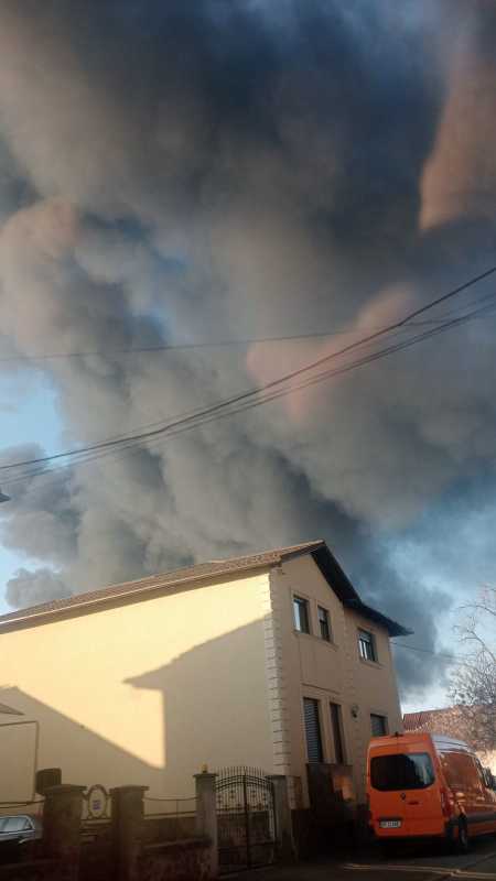 FOTO/VIDEO Orașul Arad, acoperit de un nor gros de fum, în urma unui incendiu la o fabrică de polistiren