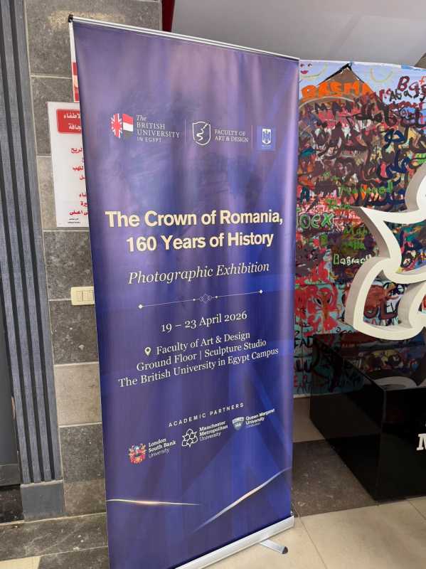 Principele Radu efectuează o vizită cu caracter public în Republica Arabă Egipt, prilej cu care Alteța Sa a participat, duminică, la vernisajul expoziției AGERPRES dedicată aniversării a 160 de ani de la fondarea Casei Regale a României, la Universitatea Britanică din Egipt.