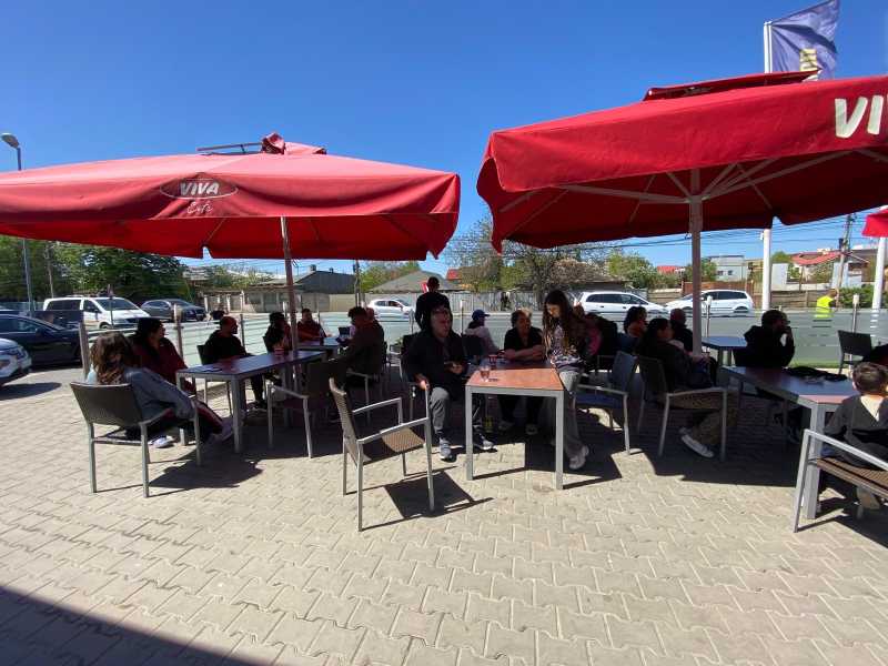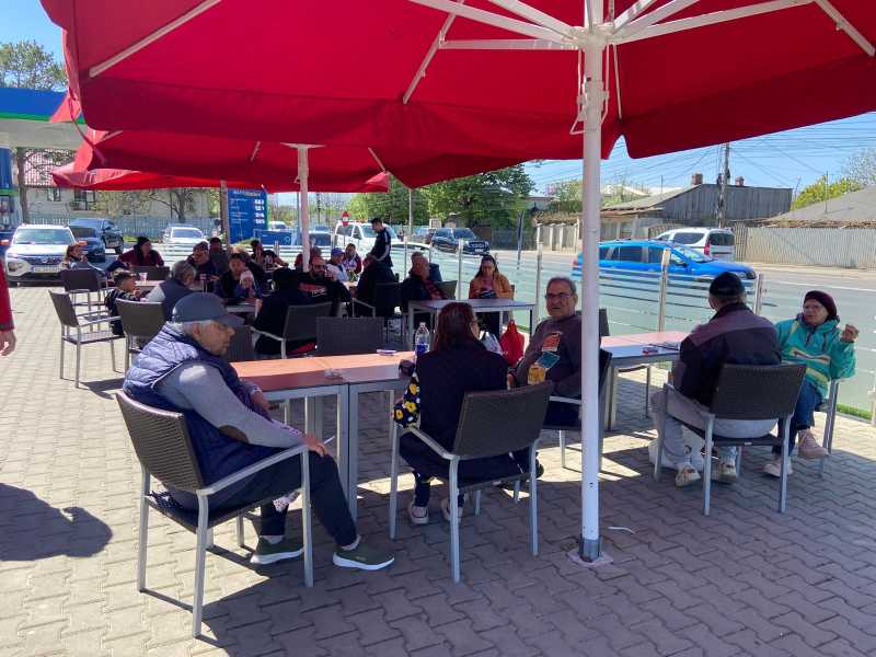 De asemenea, mai multe zeci de oameni, mai în vârstă, au fost instalați de reprezentanți ai autorităților pe terasa unei benzinării, la mesele cu umbrele, pentru a fi protejați de soare.