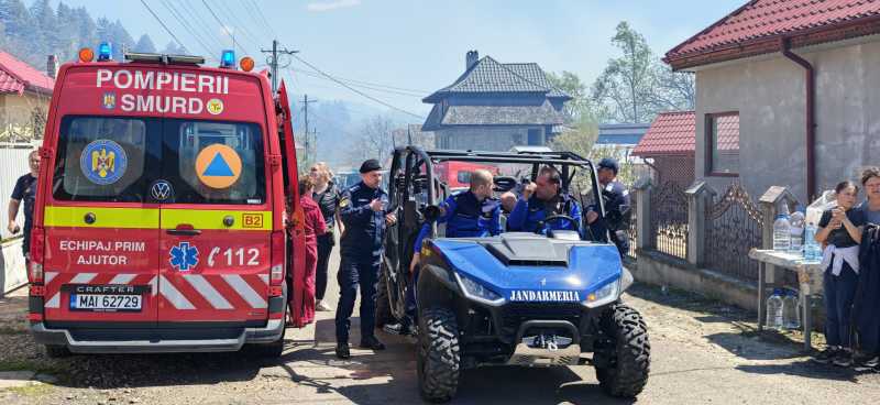 În sprijinul pompierilor acționează și personal din cadrul serviciului voluntar pentru situații de urgență.