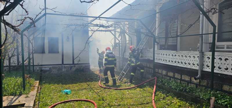 VIDEO Incendiu la Soveja/ Flăcările s-ar fi extins de la o bătrână care încerca să facă foc
