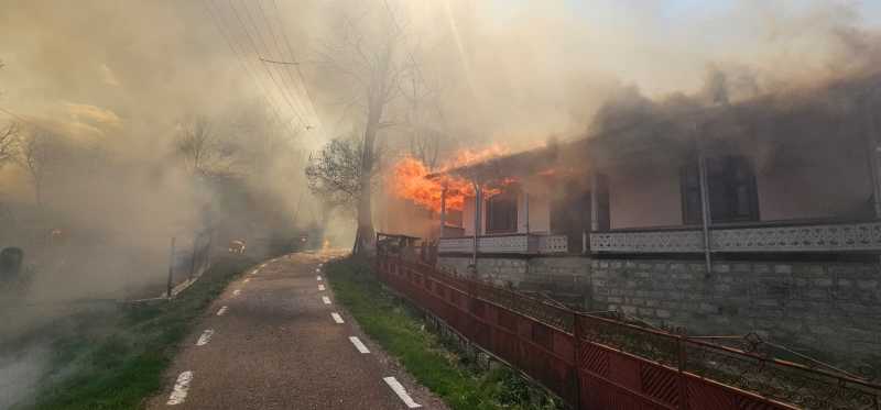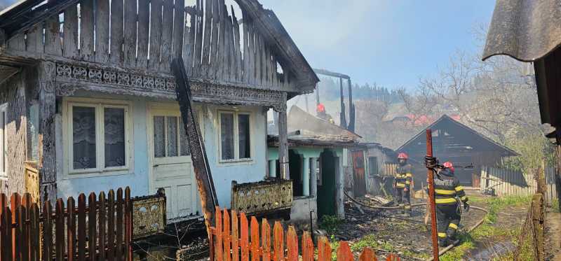 VIDEO Incendiu la Soveja/ Focul - extins la 14 gospodării; o persoană rănită, trei cu atacuri de panică
