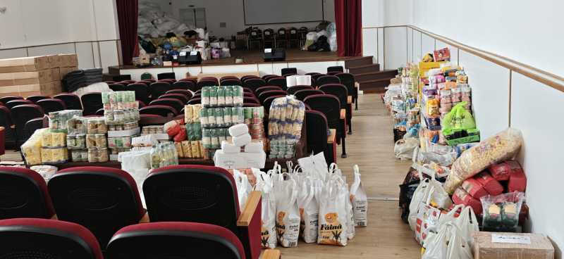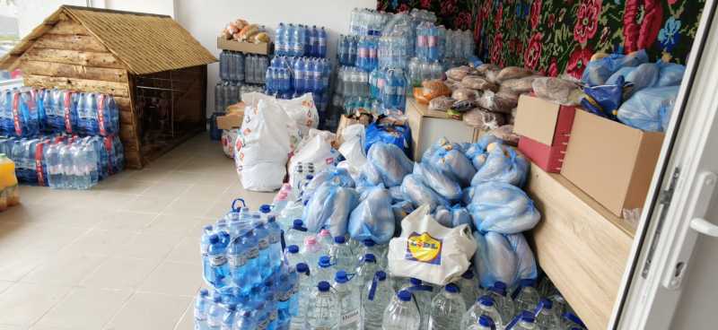În paralel, în spații improvizate din comună și în săli puse la dispoziție de autorități sunt depozitate ajutoare: alimente, apă, îmbrăcăminte, produse de igienă și alte bunuri de strictă necesitate, aduse de oameni din întreaga țară. Pentru că foarte multe instituții, asociații, comunități, chiar și mici grupuri de persoane s-au mobilizat în fața acestei tragedii.