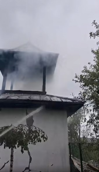 VIDEO Vâlcea: Incendiu izbucnit la clopotnița unei biserici din Lădești după ce ar fi explodat centrala termică