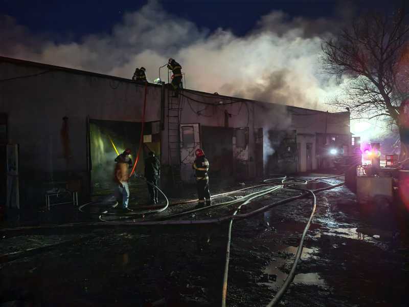 Vaslui: Incendiu puternic la un service auto; intervin cinci autospeciale cu 30 de pompieri