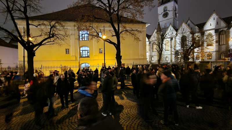 Peste 200 de oameni s-au strâns vineri seara în fața sediului PSD Sibiu - în locul unde în trecut s-au desfășurat protestele ''Vă vedem'' -, unde au protestat prin tăcere, pentru o justiție independentă.