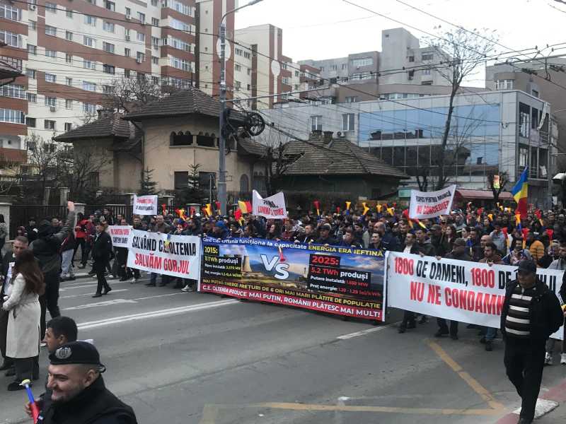 Aproximativ 1.500 de persoane participă, vineri, la Târgu Jiu, la protestul minerilor, cărora li s-au alăturat primari și localnici din mai multe zone miniere din județul Gorj. Protestul a început în fața sediului Complexului Energetic Oltenia (CEO), iar apoi manifestanții au pornit într-un marș prin centrul municipiulu